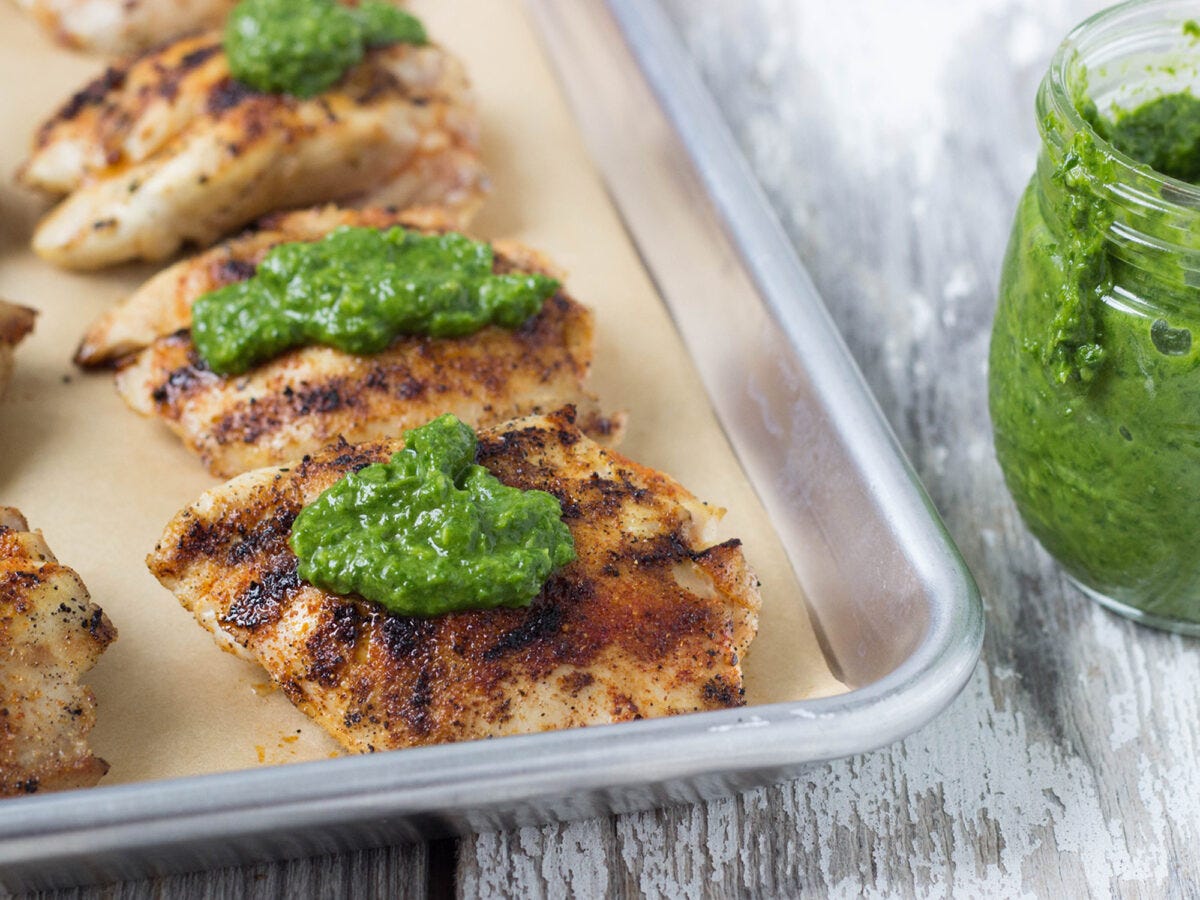 Barbecue Chicken Thighs with Arugula Pesto - A beautifully-designed PDF version of this week’s recipe that you can save or print out, to build your own personalized Nutrivore Cookbook week by week.