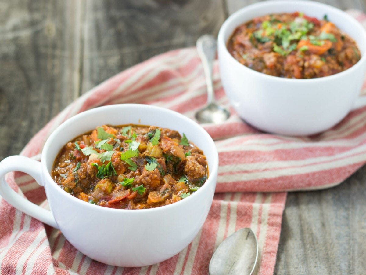 🥗 This Pumpkin Chili leans into pumpkin with both fresh pie pumpkin, roasted and added for texture, and canned pumpkin for a thick, incredibly flavorful, slightly sweet, chili that is also packed full of nutrient-rich vegetables and herbs. This is a great option for people who don’t tolerate beans, and with a Nutrivore Score of 555, it is a more nutrient-dense take on a standard favorite.